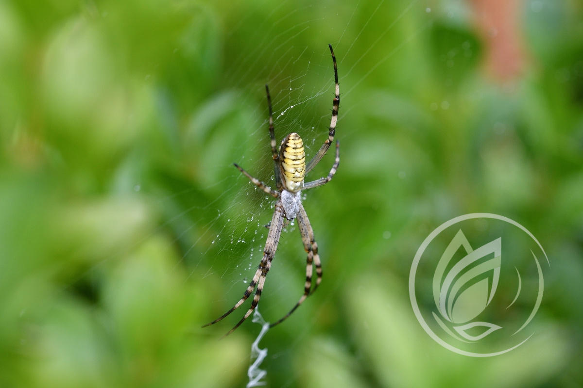 Argiope bruennichi (wasp spider) is a species of orb-web spider distributed throughout central Europe, northern Europe, north Africa, parts of Asia, the Azores archipelago, as well as recent sightings in North American states such as North Carolina and Ohio. Like many other members of the genus Argiope, (including St Andrew's Cross spiders), it shows striking yellow and black markings on its abdomen.