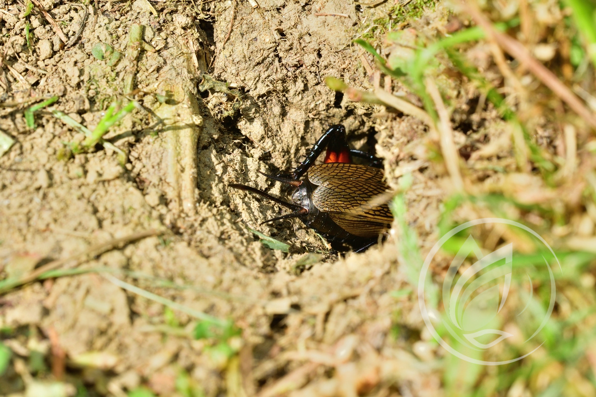 Gryllus campestris, the European field cricket or simply the field cricket in the British Isles,[2] is the type species of crickets in its genus and tribe Gryllini. These flightless dark colored insects are comparatively large; the males range from 19 to 23 mm and the females from 17 to 22 mm.