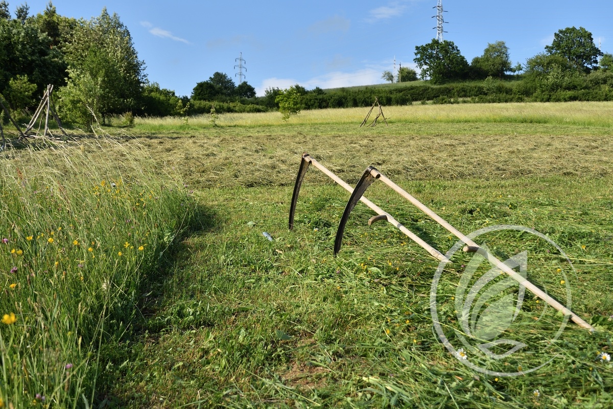 Hand scythes traditional way of cutting grass.