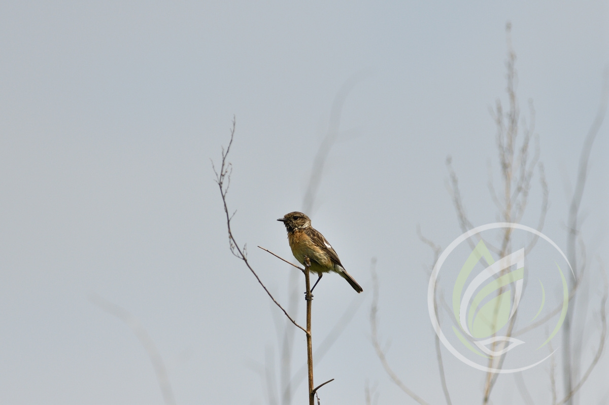 Je menší ako vrabec. Samček má čiernu hlavu a chrbát, biely prúžok na čiernom krídle a hrdzavo hnedú hruď.